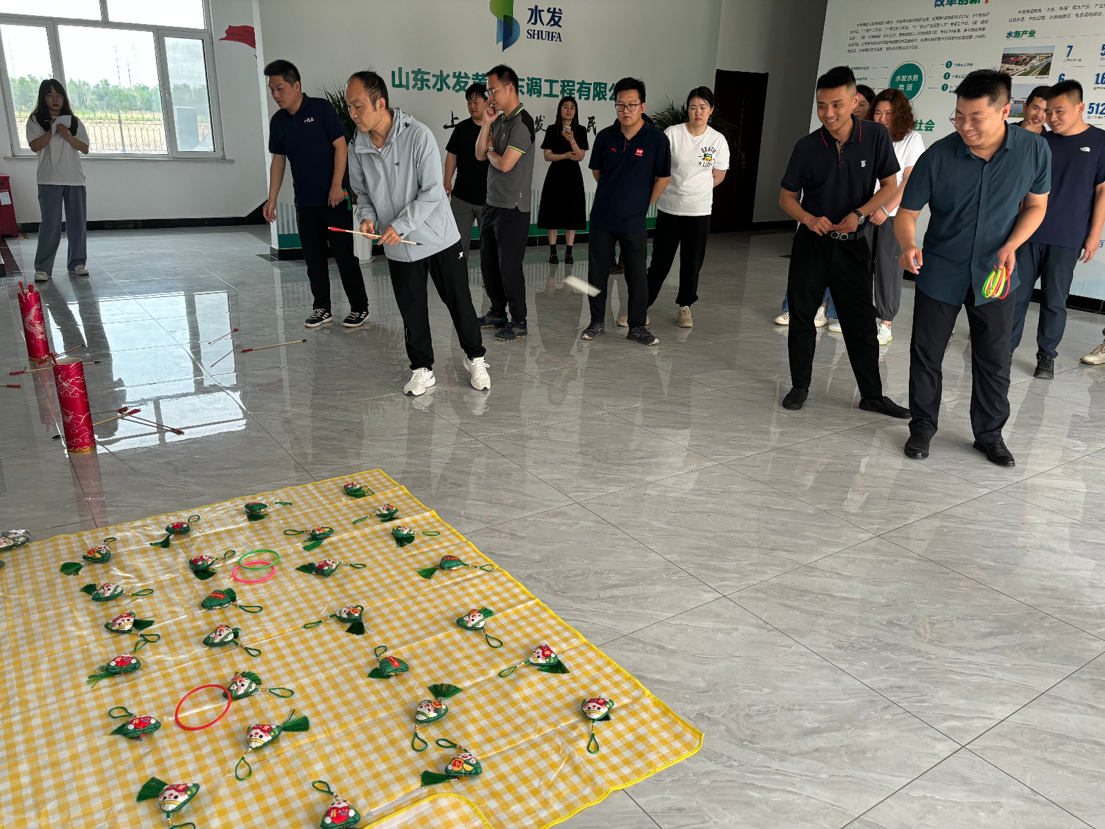 本次端午節(jié)活動分為游戲互動和包粽子環(huán)節(jié)。活動現(xiàn)場歡聲笑語不絕于耳,投壺比賽激起了參與者們的熱情,每人八次投壺機(jī)會,大家站在規(guī)定的投擲線后,專注投擲,場面熱鬧有趣。緊接著是套粽子比賽,大家摩拳擦掌,爭取每一次套中粽子香包的機(jī)會,盡情釋放節(jié)日的喜悅與活力。