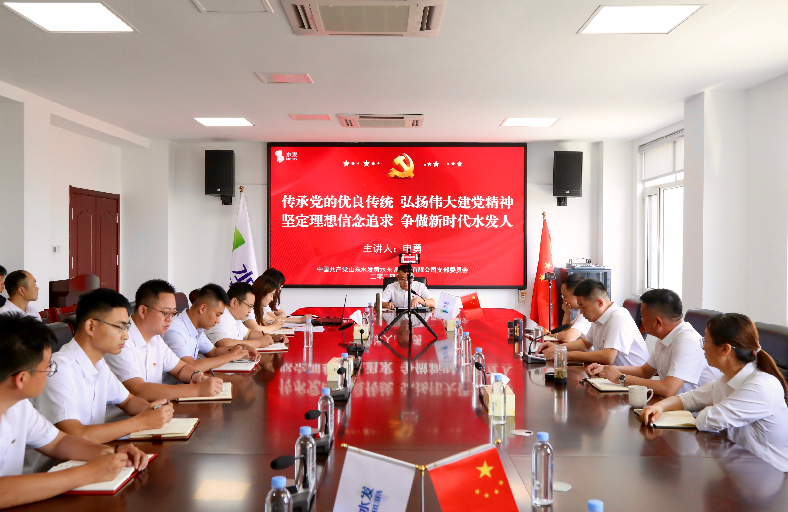 在中國(guó)共產(chǎn)黨成立103周年到來(lái)之際,為弘揚(yáng)偉大建黨精神,進(jìn)一步增強(qiáng)黨員的責(zé)任感和使命感,提升支部全體黨員黨性修養(yǎng)和紀(jì)律規(guī)矩意識(shí)。6月26日上午,黃水東調(diào)黨支部開(kāi)展“七一”專(zhuān)題黨課活動(dòng),黨支部書(shū)記申勇同志以“傳承黨的優(yōu)良傳統(tǒng) 弘揚(yáng)偉大建黨精神,堅(jiān)定理想信念追求 爭(zhēng)做新時(shí)代水發(fā)人”為題進(jìn)行授課。支部全體黨員及公司干部職工參加活動(dòng)。